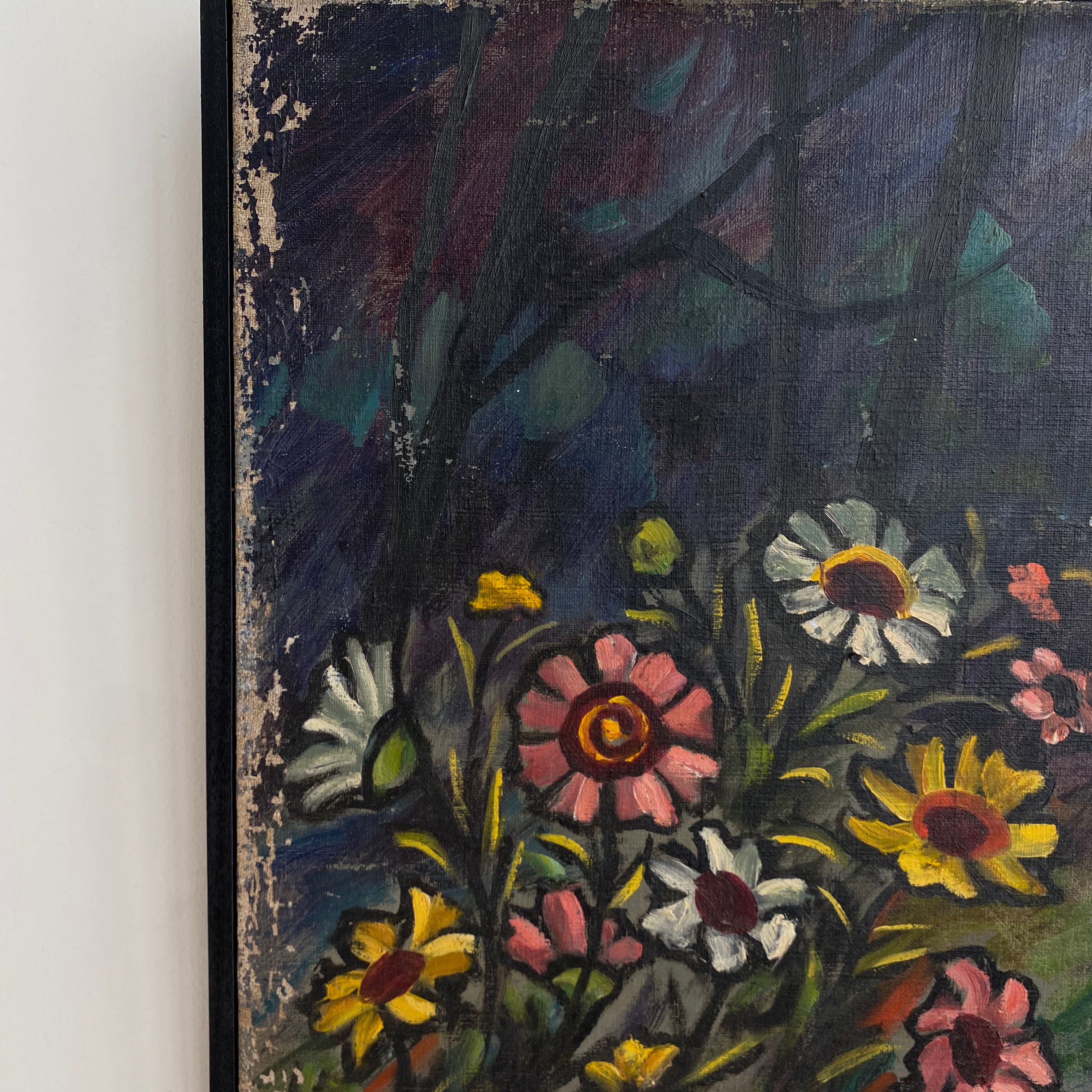 Vintage "Painted Daisies" Oil on Canvas by Ann Kocsis, 1950's