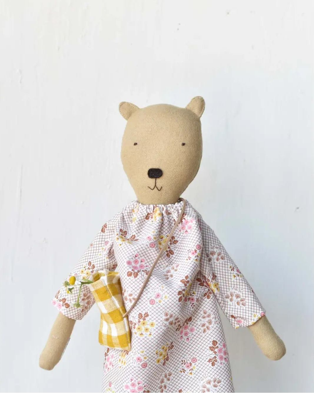 Meet Agatha, she arrives wearing a floral print Day Dress and carries a coordinating linen satchel. She is ready for her next adventure!