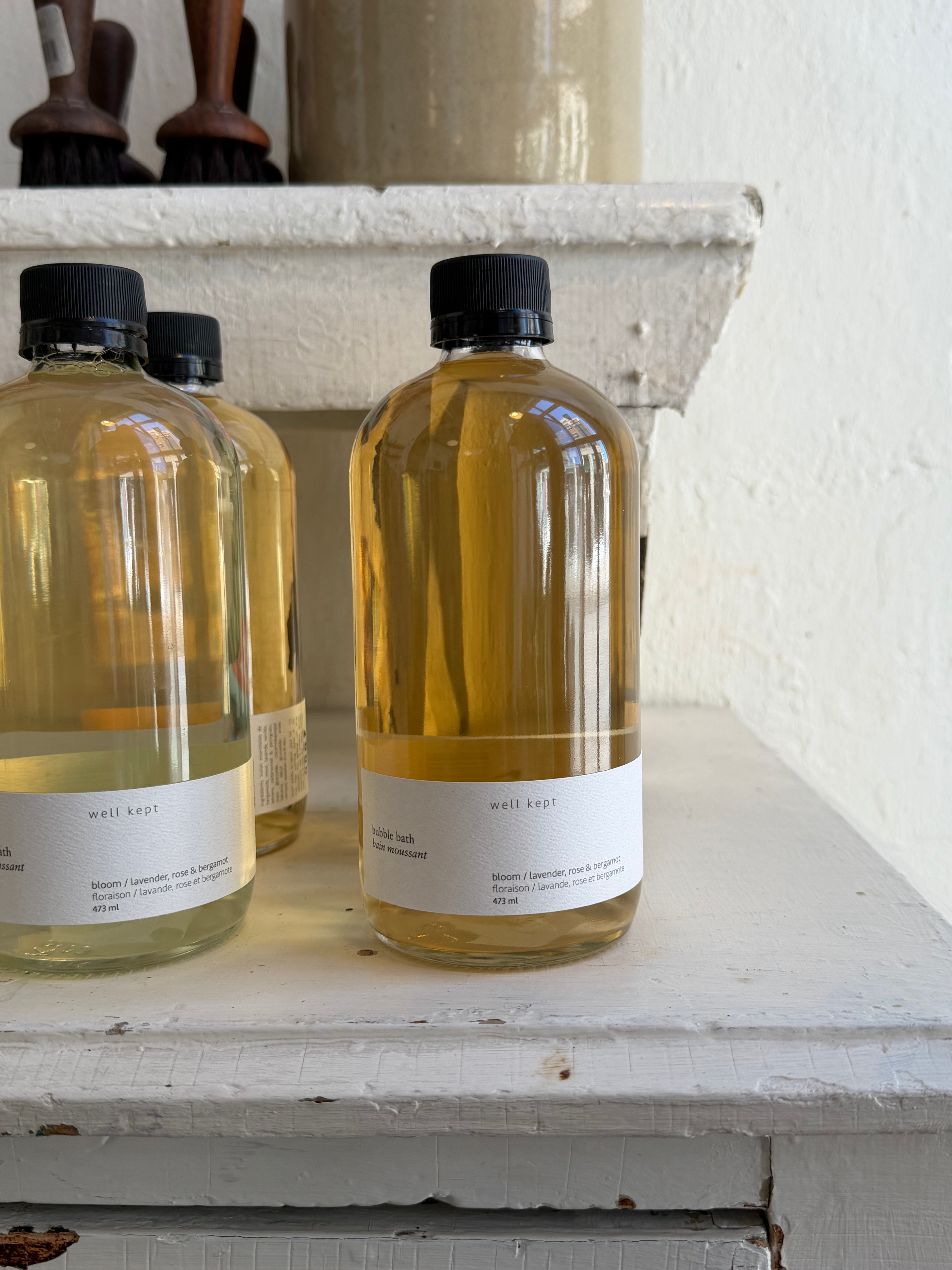 Invert the bottle once to re-blend all the essential oils then pour 1/4 to 1/2 cup into running water. The more you pour, the more bubbles you’ll enjoy. Stir the bath as it fills to create more bubbles if desired.