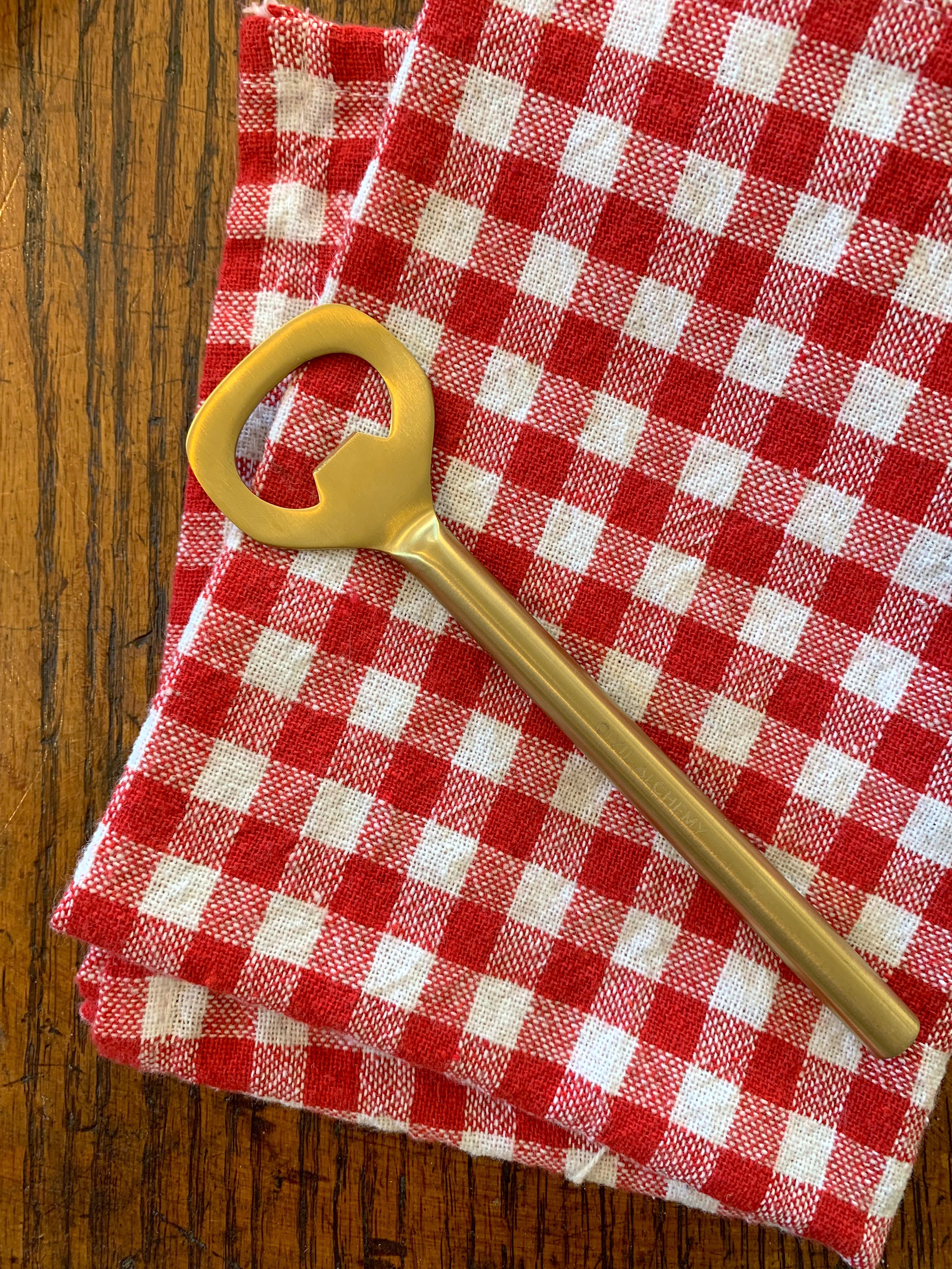 This solid brass bottle opener combines functionality with elegance. Crafted from real, live brass, it boasts a sturdy construction designed to beautifully patina over time. Its timeless design makes it a stylish and practical addition to any kitchen or bar.