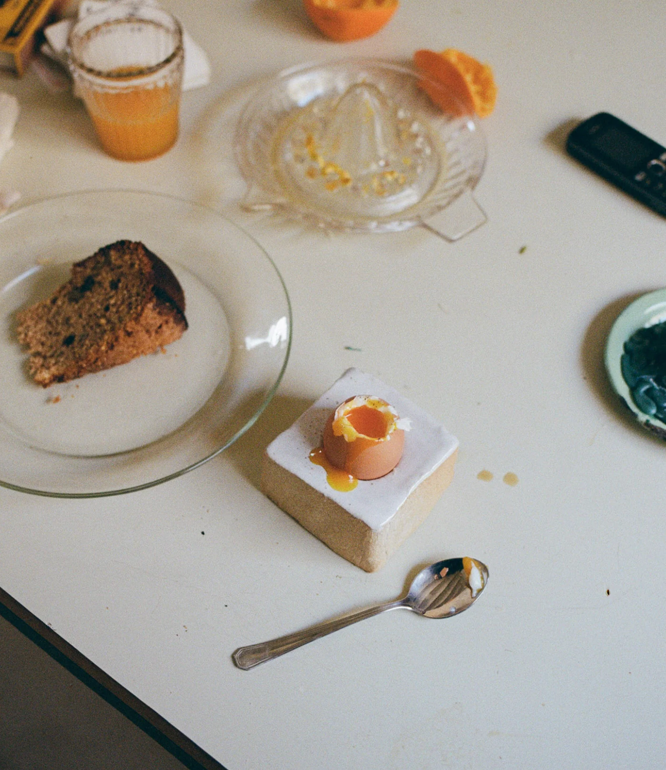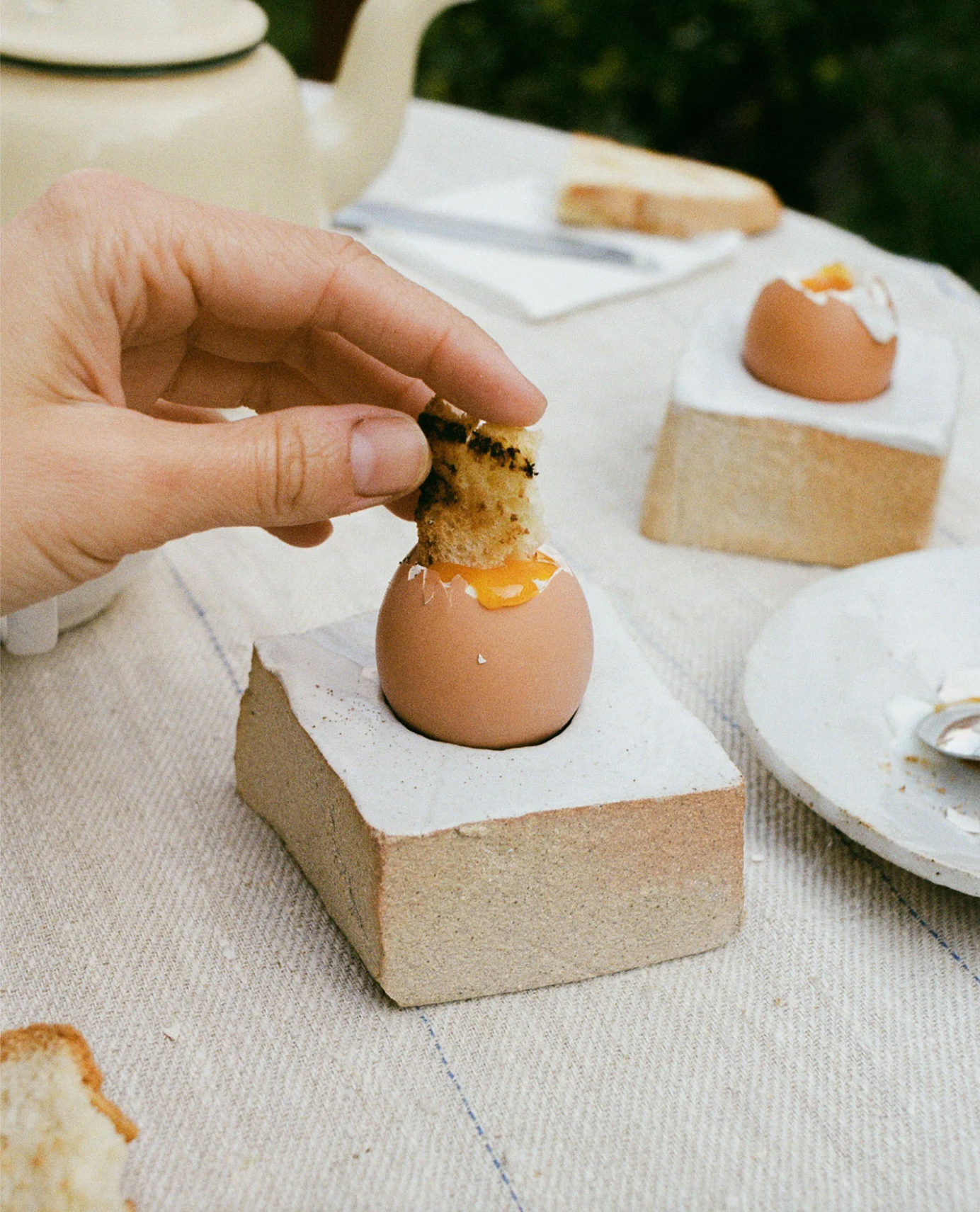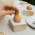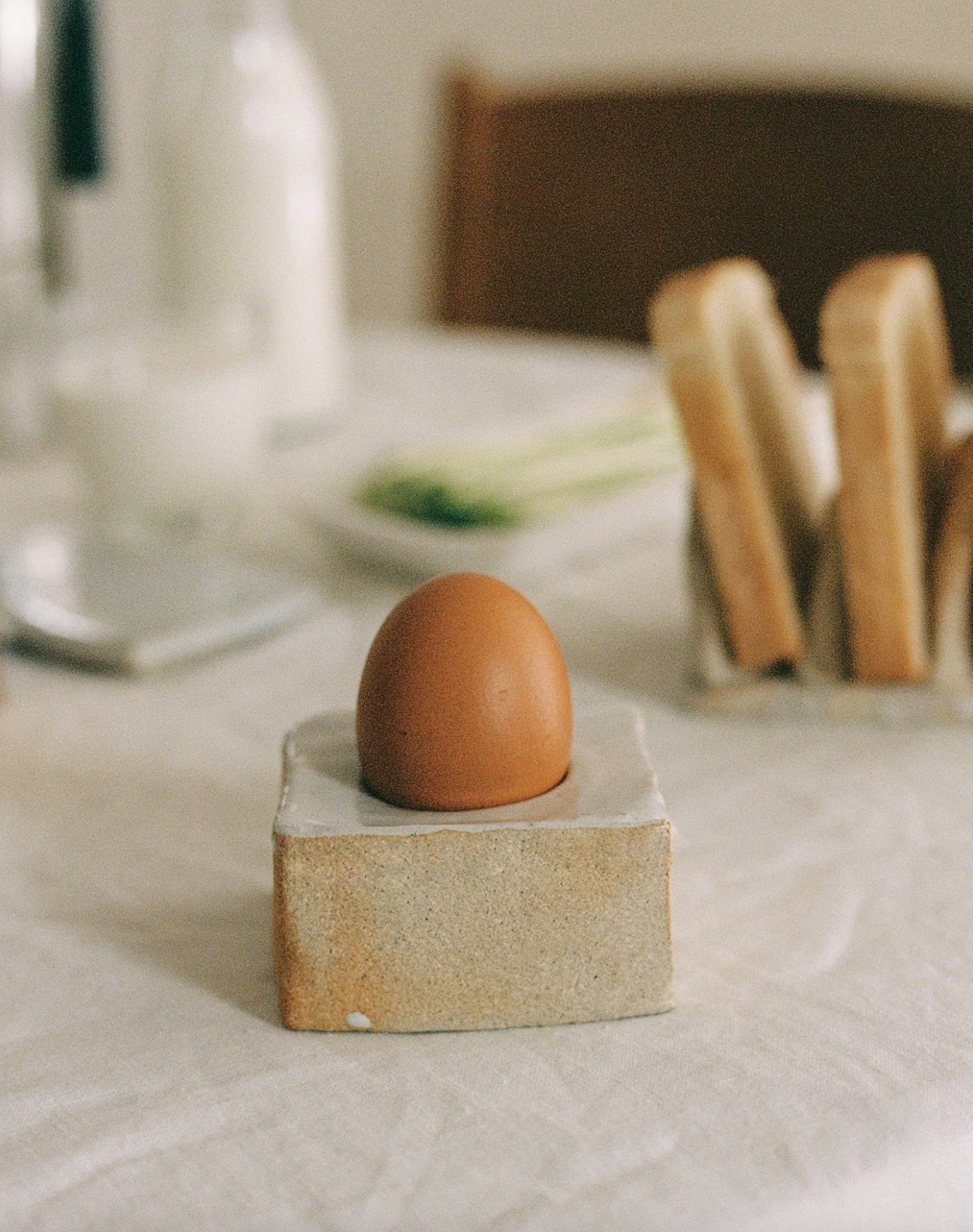 Ceramic egg cruet with a dramatic design, perfectly complementing your breakfast alongside our butter dish and toast rack. Made by hand in Vernís' studio. Fired with pine wood in their backyard. They are all unique.