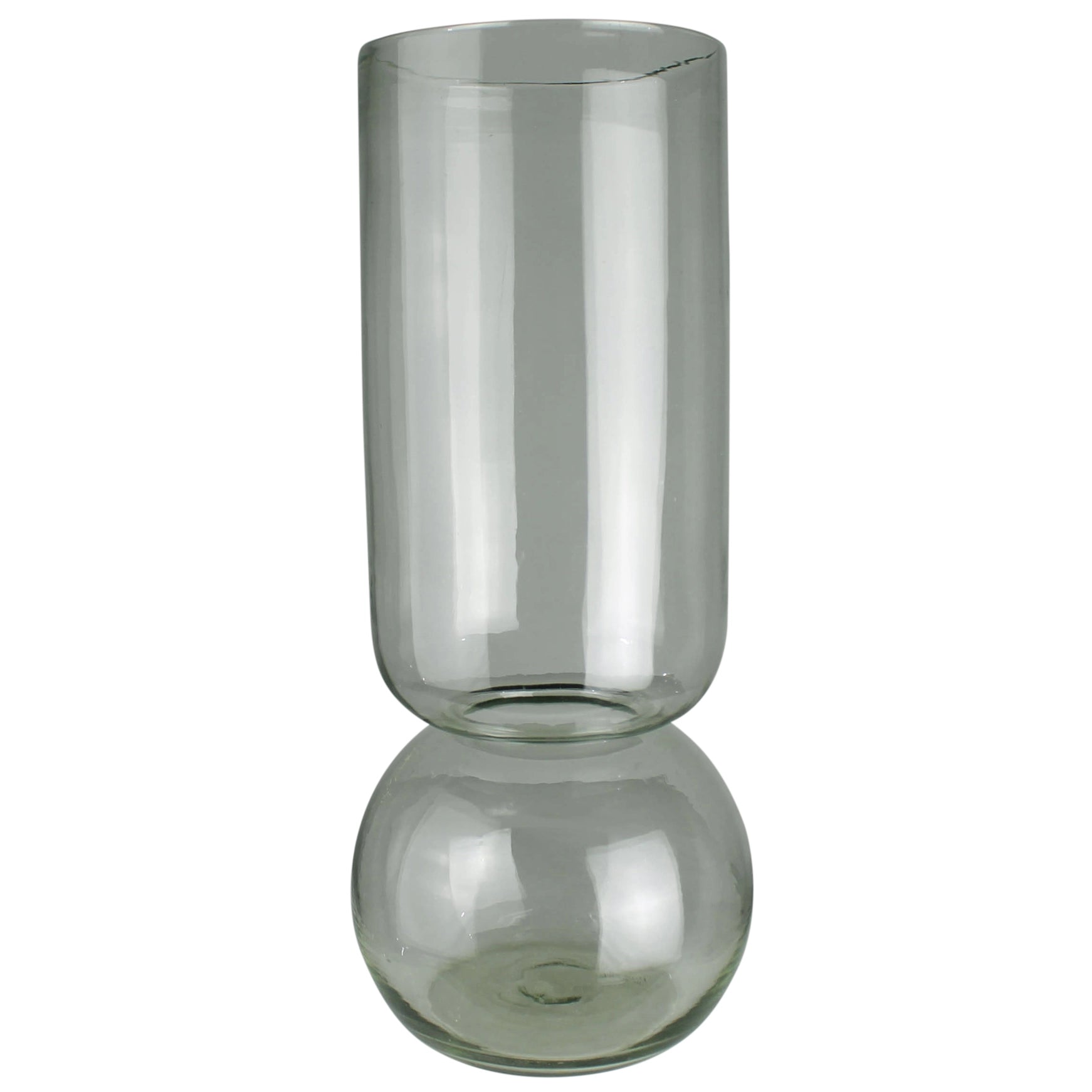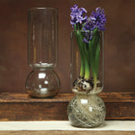 This recycled glass bulb vase are uniquely shaped with a spherical base and a tall cylinder to aid in supporting the shoots and flowers.