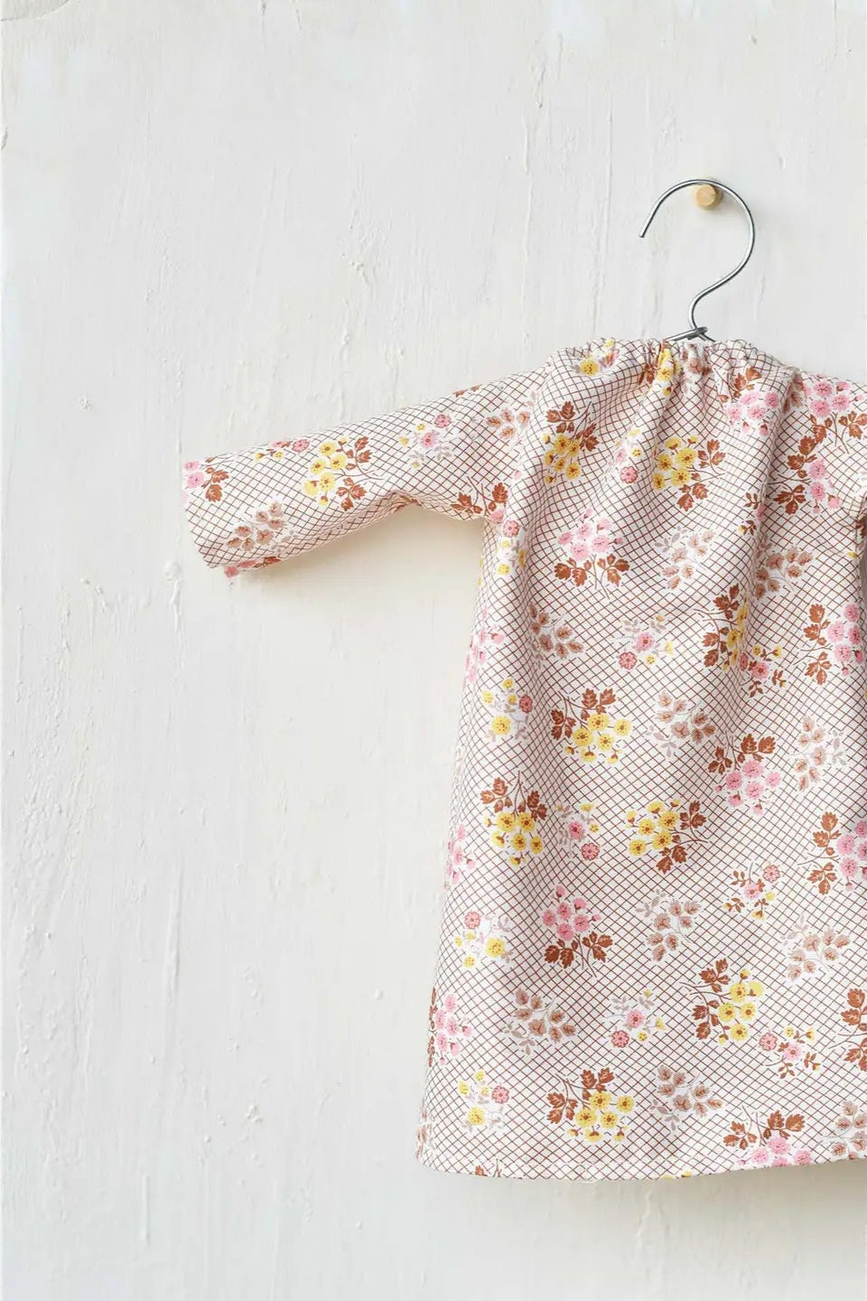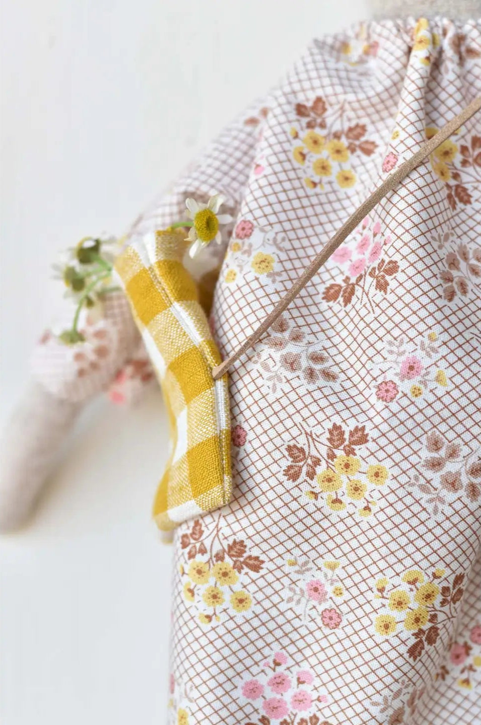 Sweet vintage charm! This handcrafted doll dress features a delicate floral print with soft pastel hues, bringing a nostalgic and timeless feel. Perfect for dressing up your favorite Woolgrass Farm doll. This sweet dress also arrives with a European gingham linen satchel.