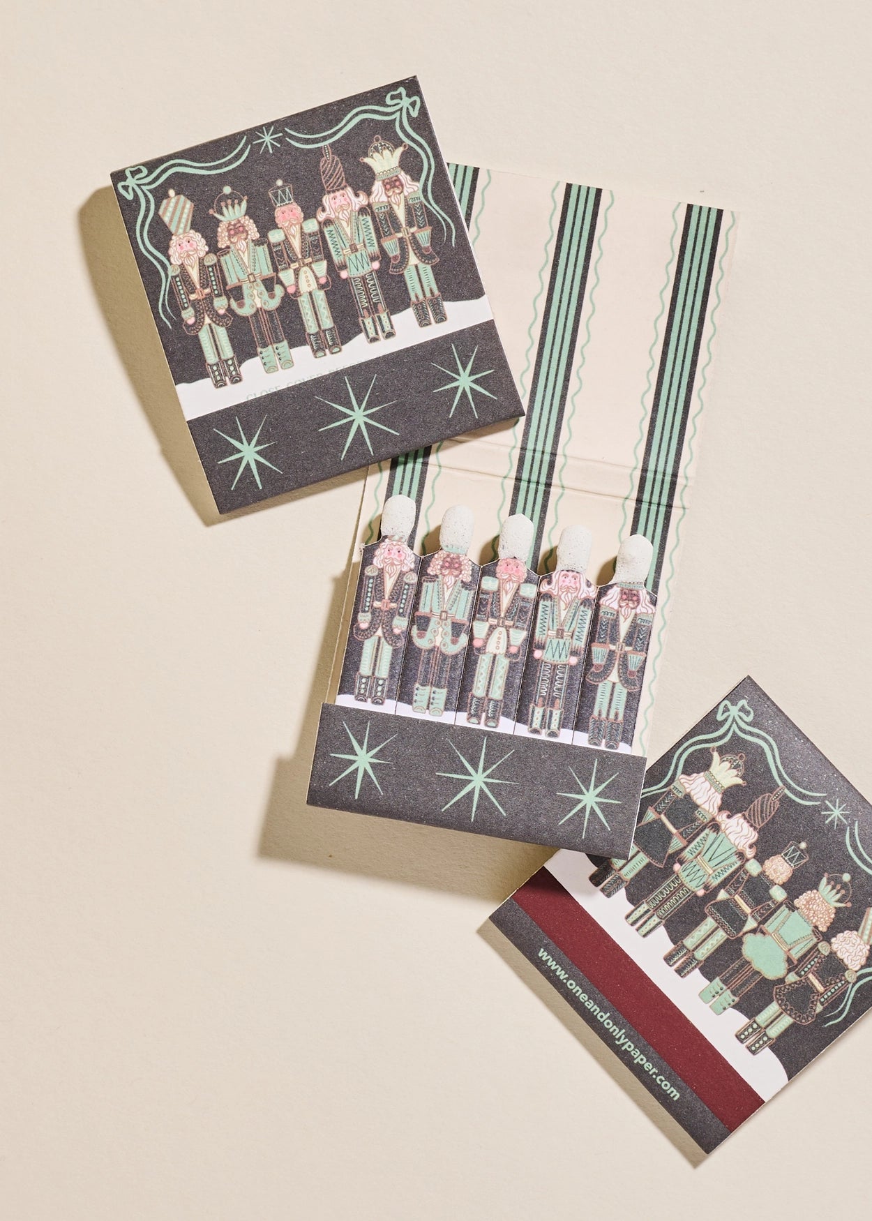 Bring holiday charm to your home with this playful nutcracker matchbook, perfect for adding a little festive magic to your candle display.