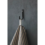 This matte black wall hook combines strength and simplicity, fitting effortlessly into any room. Use for scarves, hats, or bags, alone or arranged in multiples. Easy to install with screws, each piece has handmade character.