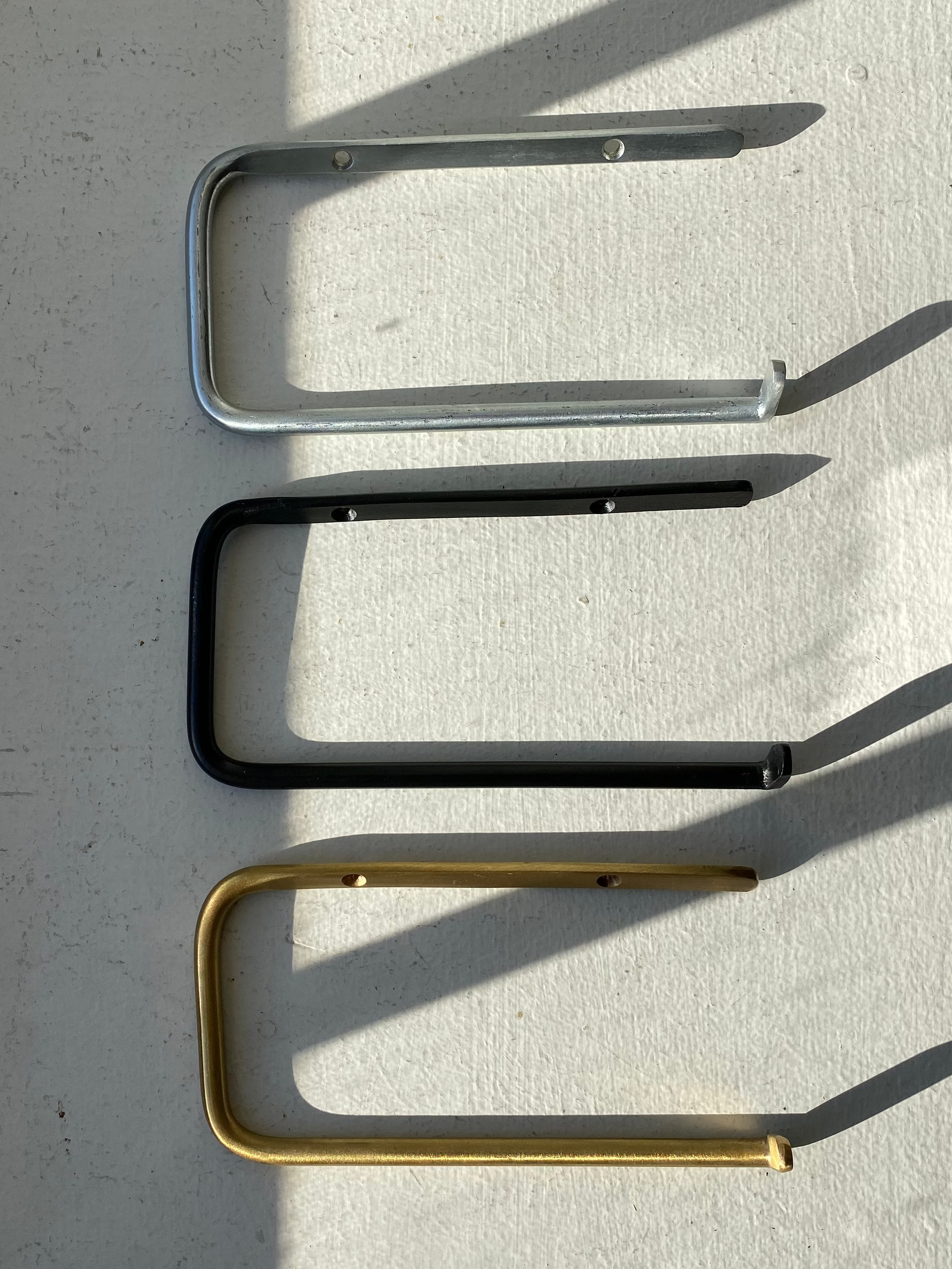 Simple, hand-wrought toilet paper holder in iron with a matte black finish. Irregularities in finish will occur. Screws are included, but it's important to know what material you are working with prior to installation.