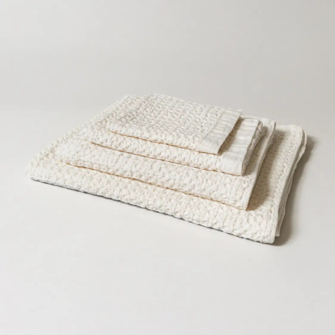 Blending neutral colorways with a three-dimensional texture, the Lattice collection is an artful accent for the modern household. Each towel is woven from 15% linen, 15% ramie, and 70% cotton, making it an exceptionally absorbent and quick-drying towel. The Lattice Linen Towel is constructed with a slimmer fit to enhance absorption and functionality.