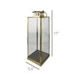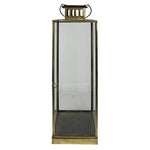 Crafted of brass and leaded glass this lantern is perfect for both casual and formal settings. Holds a 4" pillar candle and has a 3.75" handle for the option of hanging.