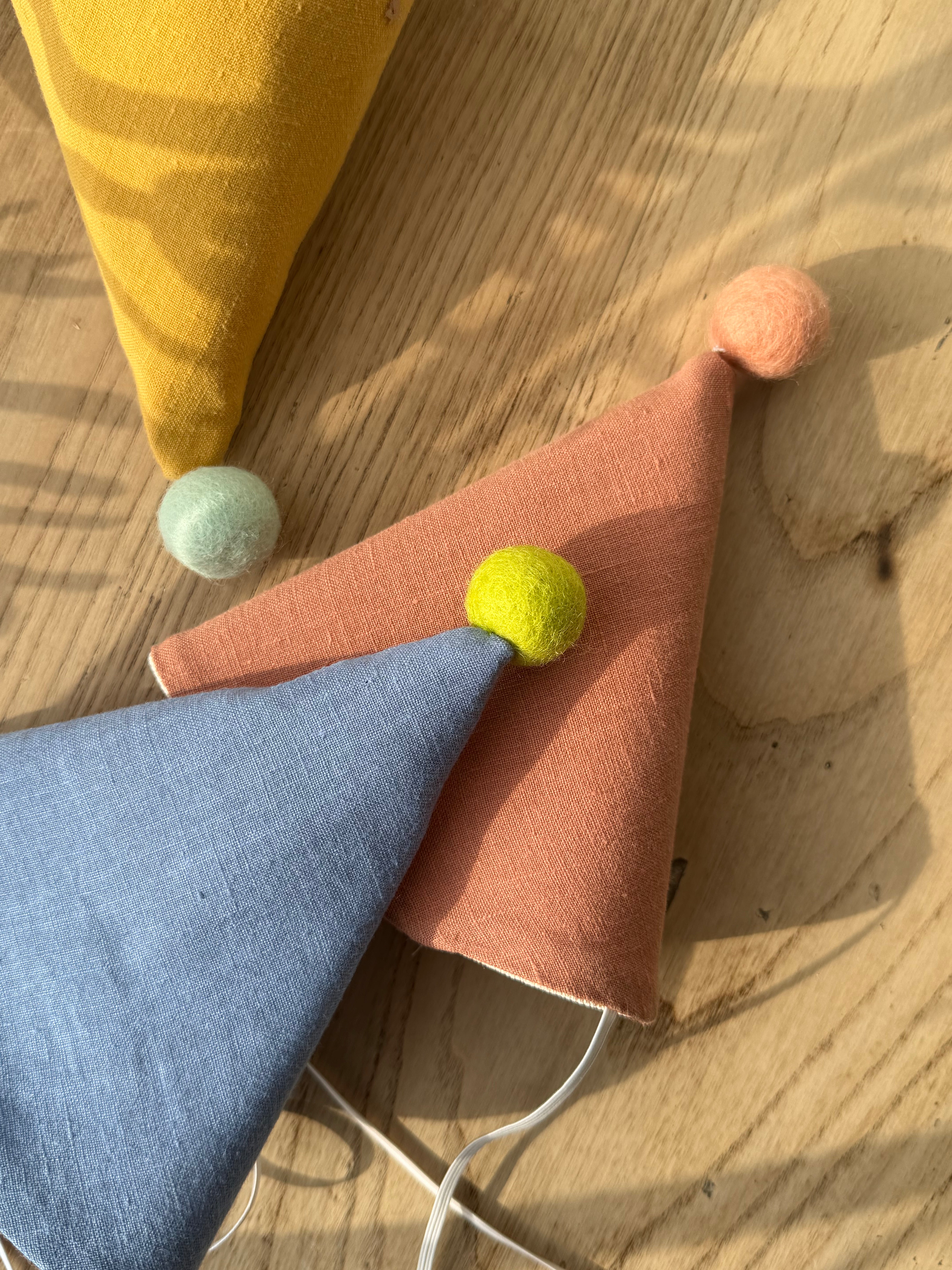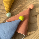 This organic linen hat topped with a wool pompom relishes in textures close to nature and simplicity. A clean finish, a minimalist design, a comforting aspect and a soothing colour to bring back the feelings of happy days! A great way to create a new eco-friendly tradition. The fun can be renewed each year!