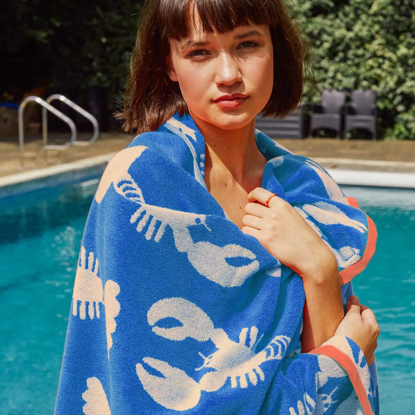 Inspired by the great outdoors, our Lobster jacquard weave towels are made from super soft, 100% organic cotton so they're incredibly absorbent and improve wash after wash. Featuring bold lobster motifs on a stylish blue or coral background, they're perfect for both modern and traditional bathroom designs and double as a beach towel for hot summer days. Available in two colors.