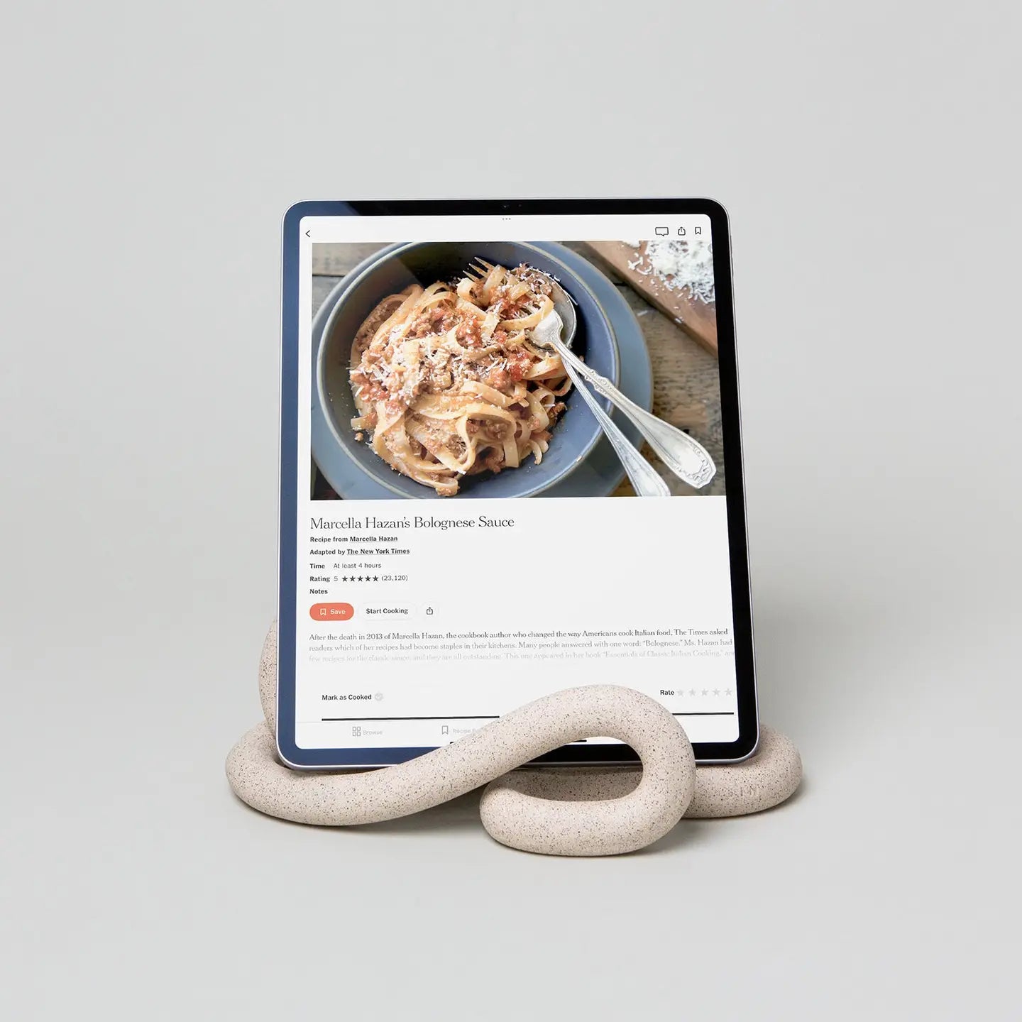 Introducing the Lumbra book stand. Follow your favorite recipes with ease or give your favorite art book the pedestal it deserves. Handmade and designed from a single ceramic coil to hold both books and tablets.