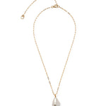Whether you're a minimalist at heart or looking for another unique gem to add to your neck-mess, the Oasis Necklace has you covered. In gold-plated brass paperclip chain with one lustrous freshwater pearl, inlaid with a semiprecious sky blue topaz stone.