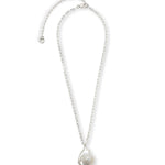 Talk about a snowball effect. We've crafted the perfect necklace to pile on with your other jewels, no matter what the season. Featuring a silver-plated brass paperclip chain with hanging freshwater Baroque pearl, inset with semiprecious sky blue topaz stone.