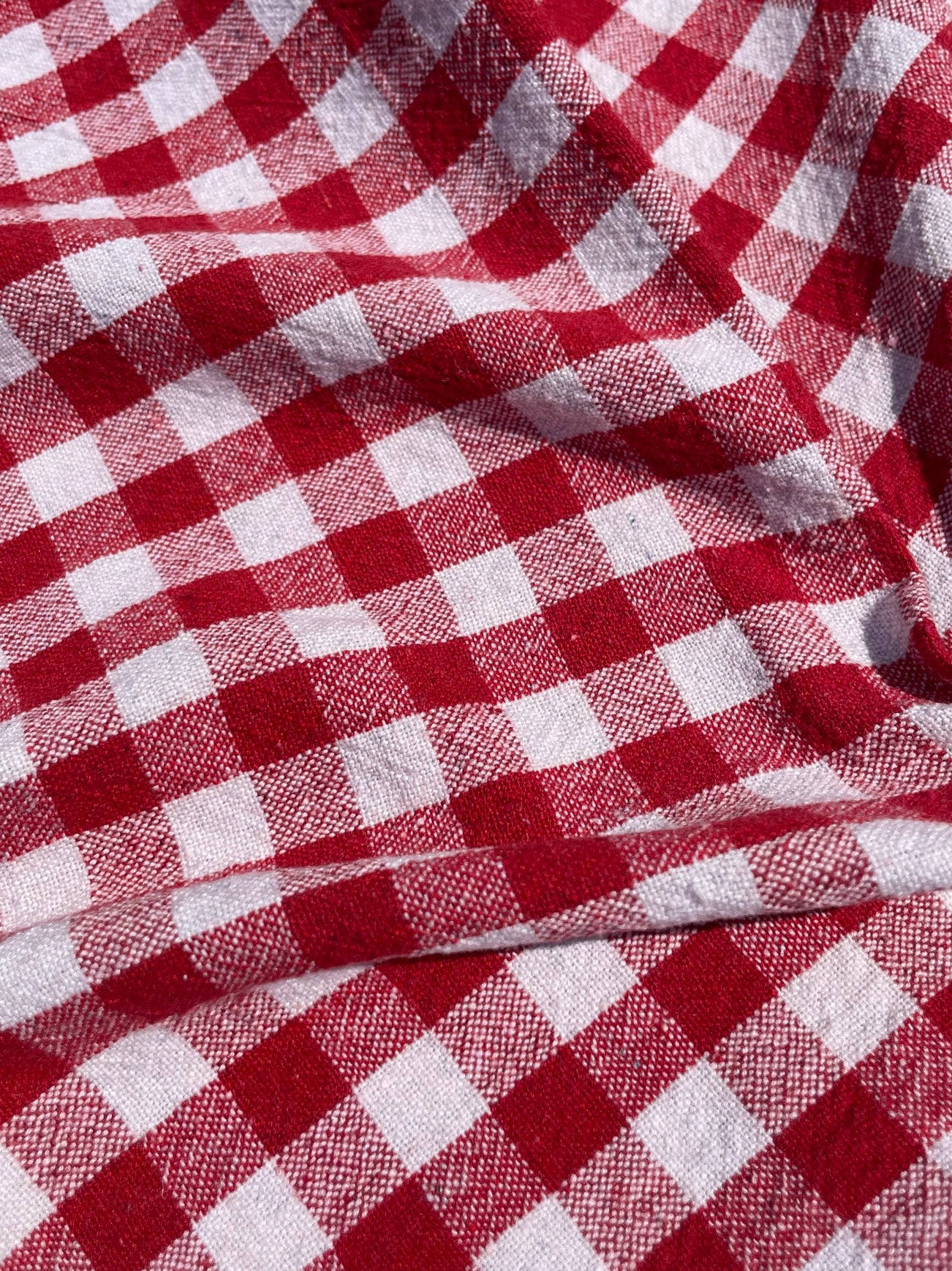 Beautiful handwoven organic cotton kitchen towel in red check.