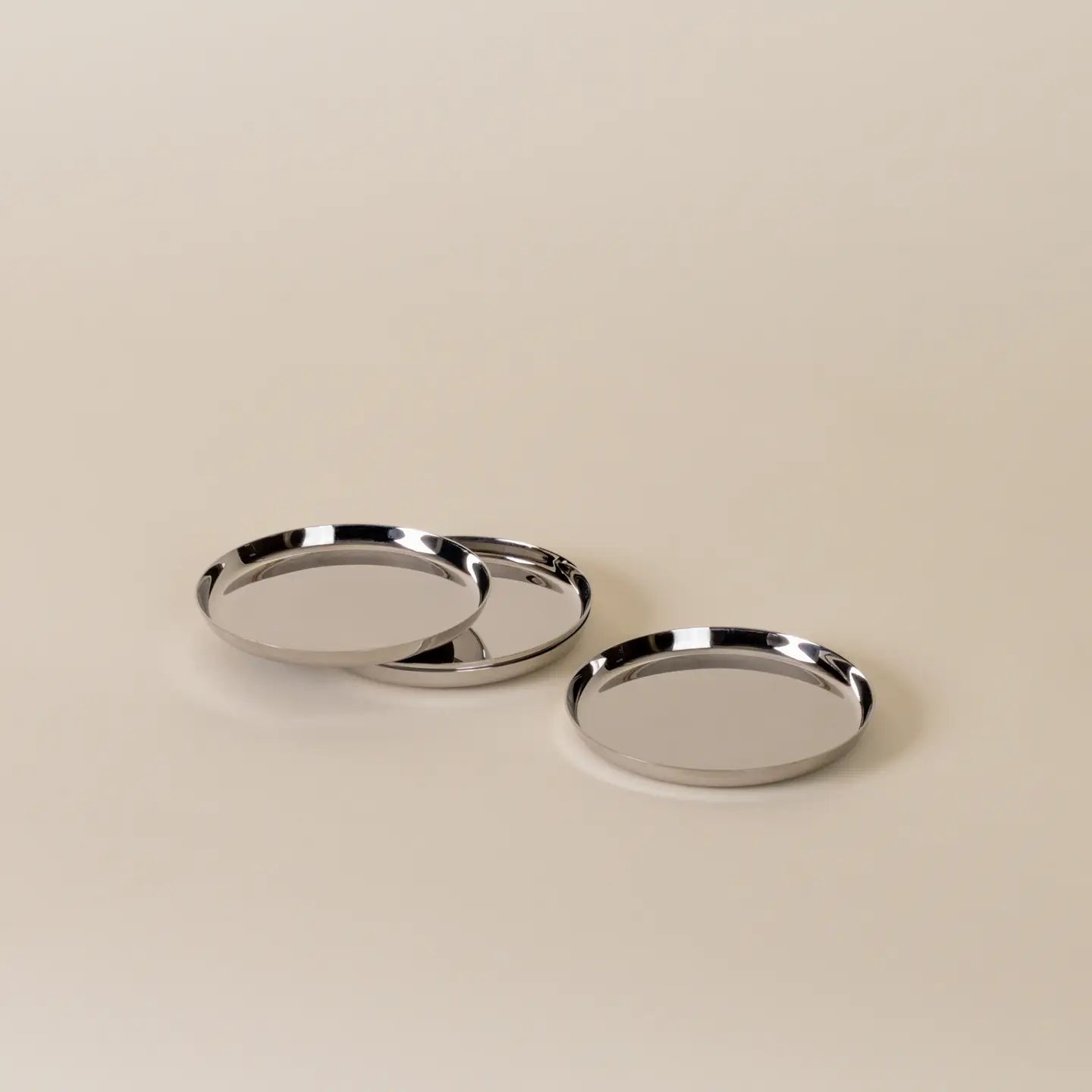 When stacked, the Puddle Coasters have a slim profile to discreetly fit into any space. The generous diameter holds a variety of glasses and wine bottles.