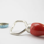 The bottle opener or corkscrew is an essential tool. Made of stainless steel with a red wooden handle, this opener is always guaranteed to be in sight at any barbecue, kitchen, or outdoor activity. Its ergonomic design provides a good grip and leverage for quick and easy use.