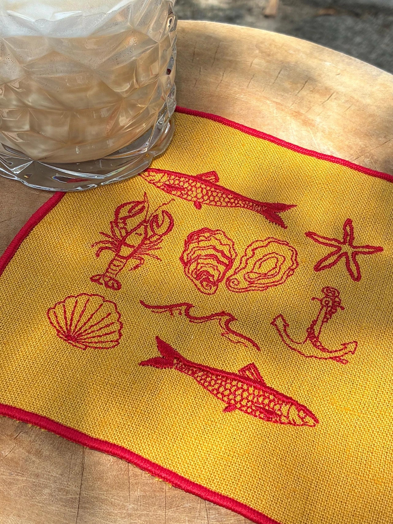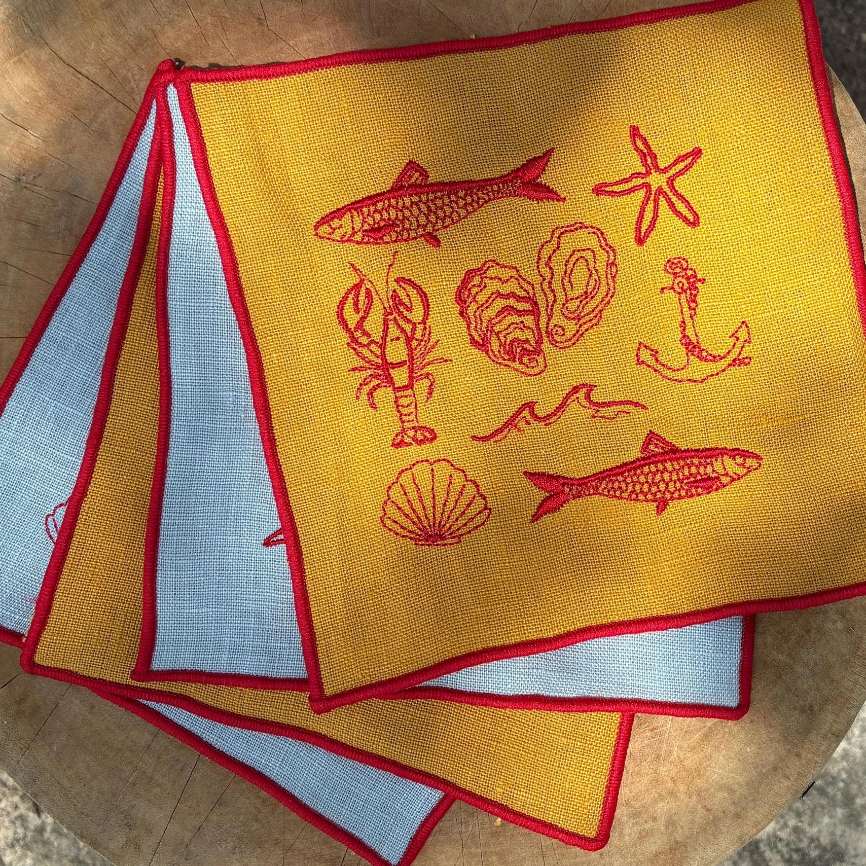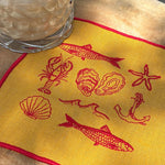 "Summer Seaside" Embroidered Linen Cocktail Napkins, Set of 4