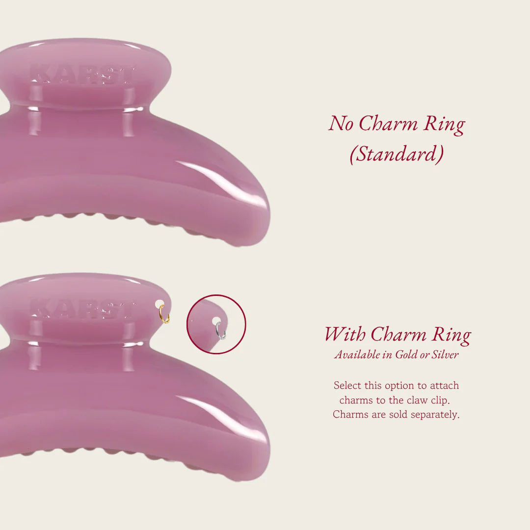 A versatile, double-reinforced hair clip that suits most hair types. This clip comes with a charm ring to hang a personalized charm from! Charms are sold separately, but you can shop them here.