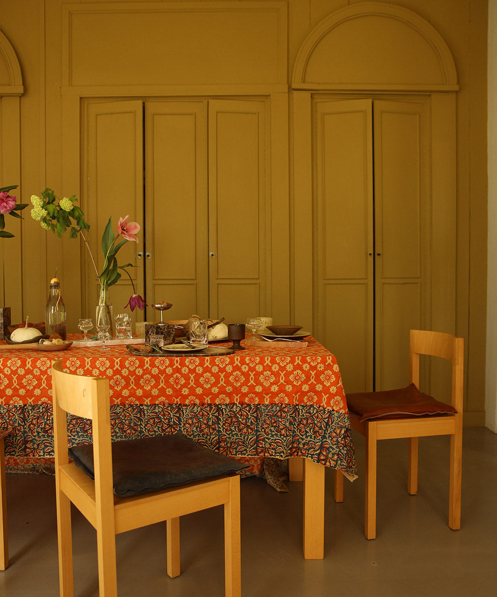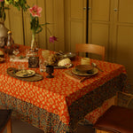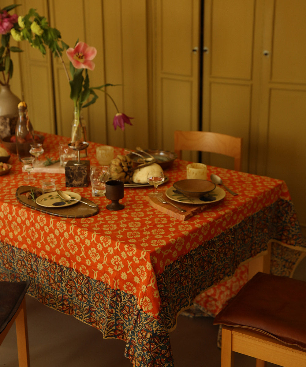Elevate your table setting with the Ulla Table Throw in Tote Bag, designed especially for long tables and festive occasions. Measuring an impressive 163 x 137.8 inches, this extra-large table throw is perfect for hosting garden parties, family gatherings, or simply adding a splash of color to your dining area. Featuring a vibrant orange floral print with a blue border, it combines style and practicality to create a stunning focal point for any table.