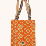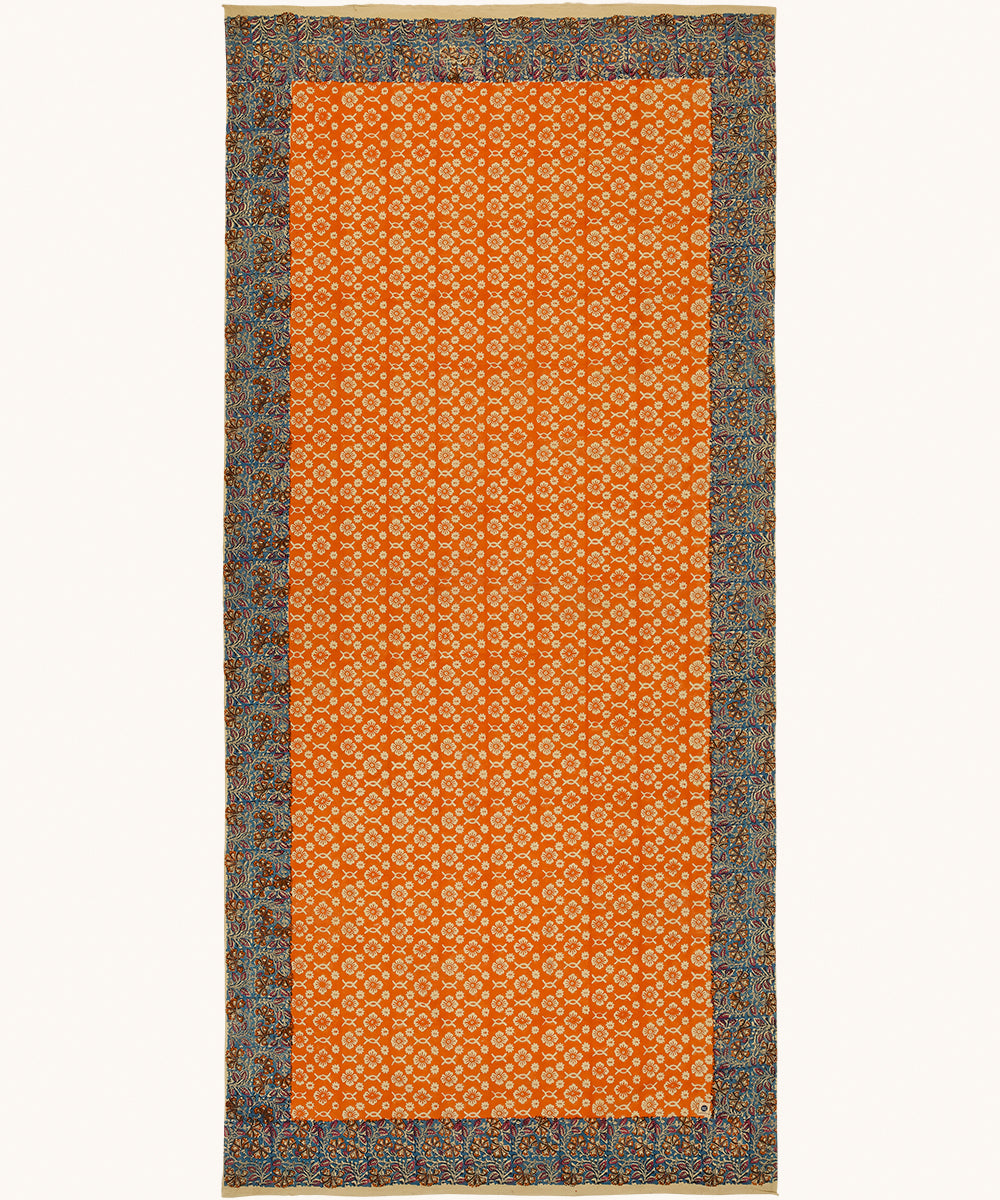 Vibrant Floral Design: The bold orange base with intricate floral motifs and a blue border adds a cheerful and elegant touch.