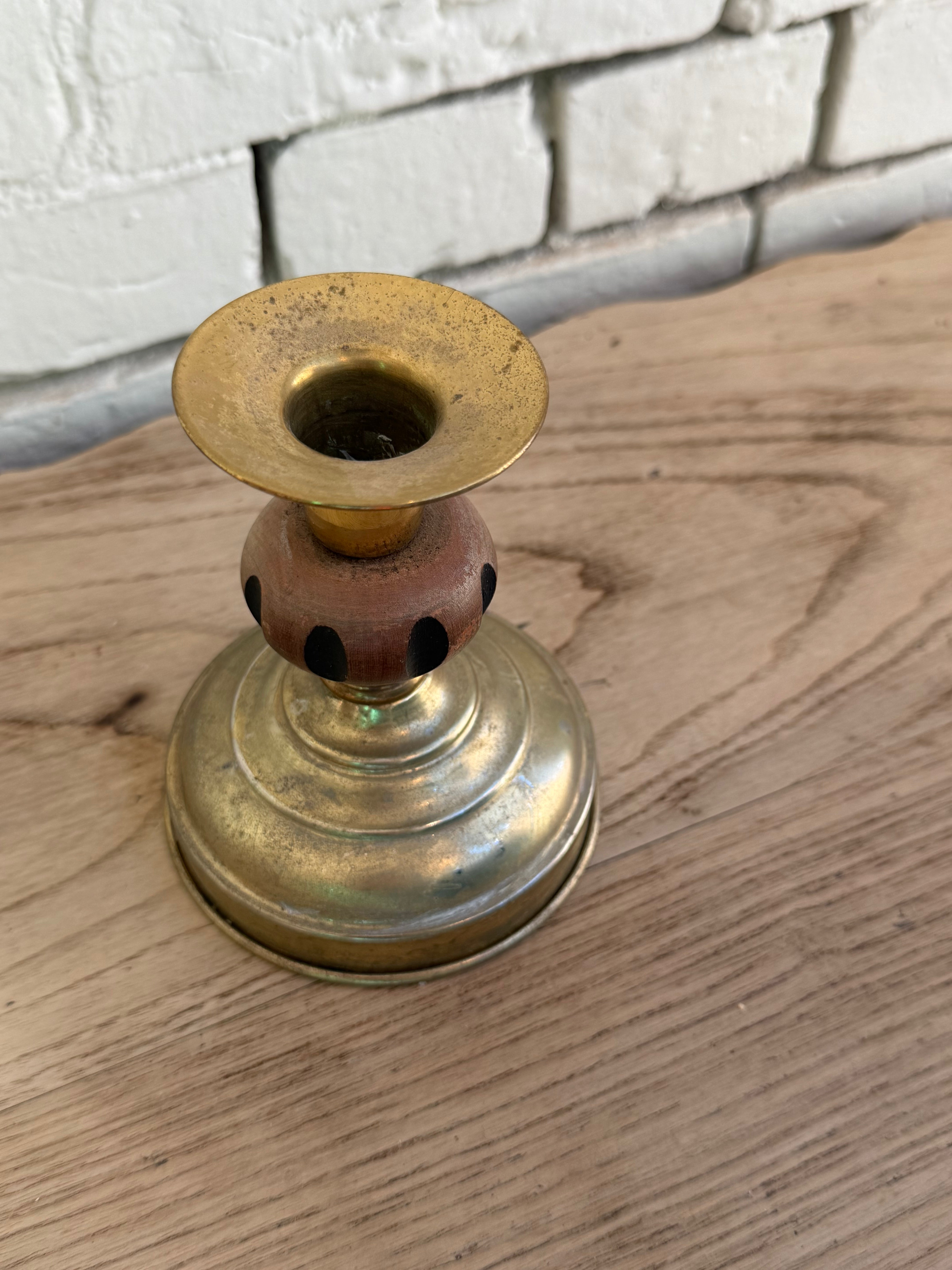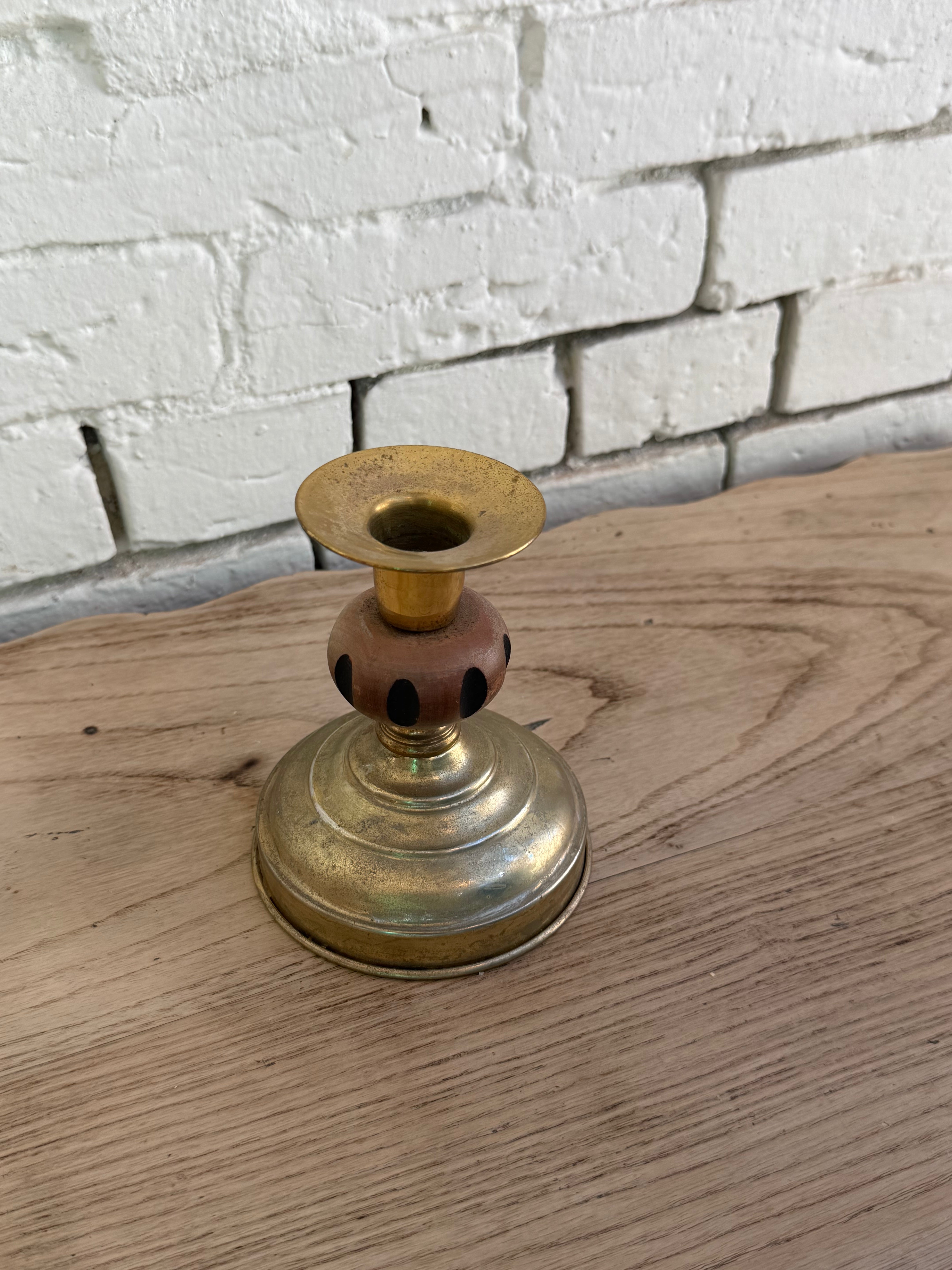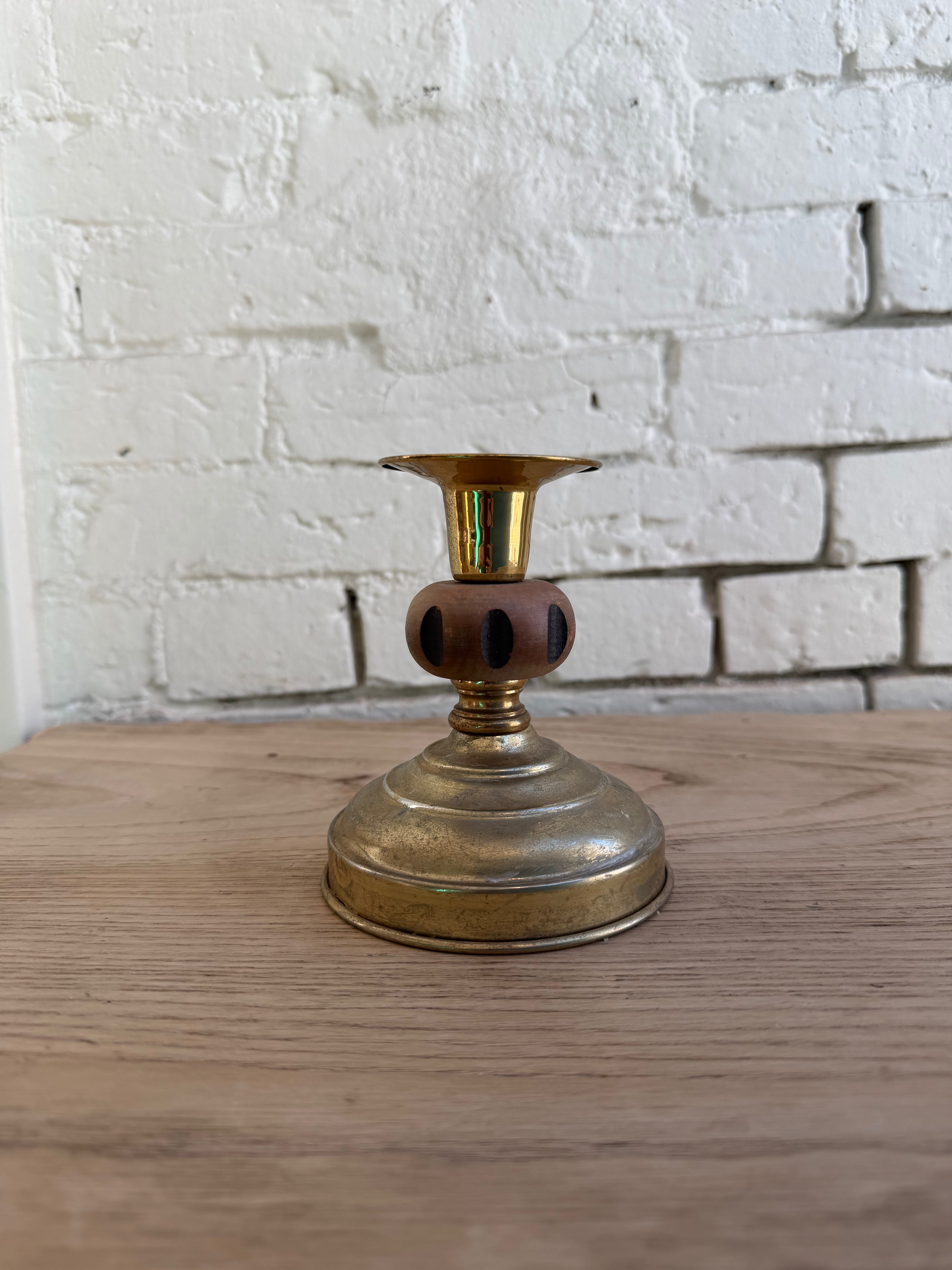 Heavyweight brass with a fun wooden detail.