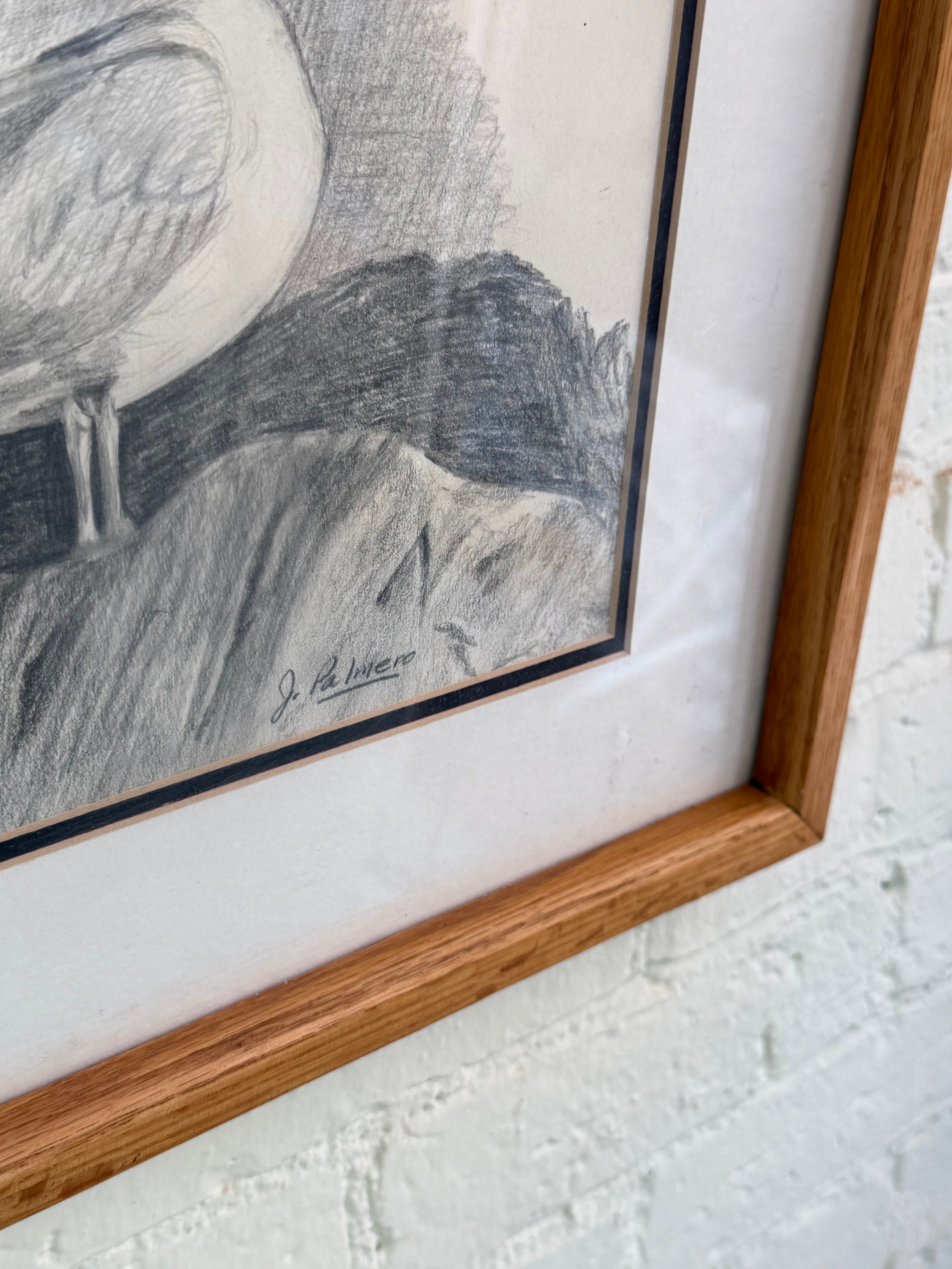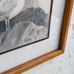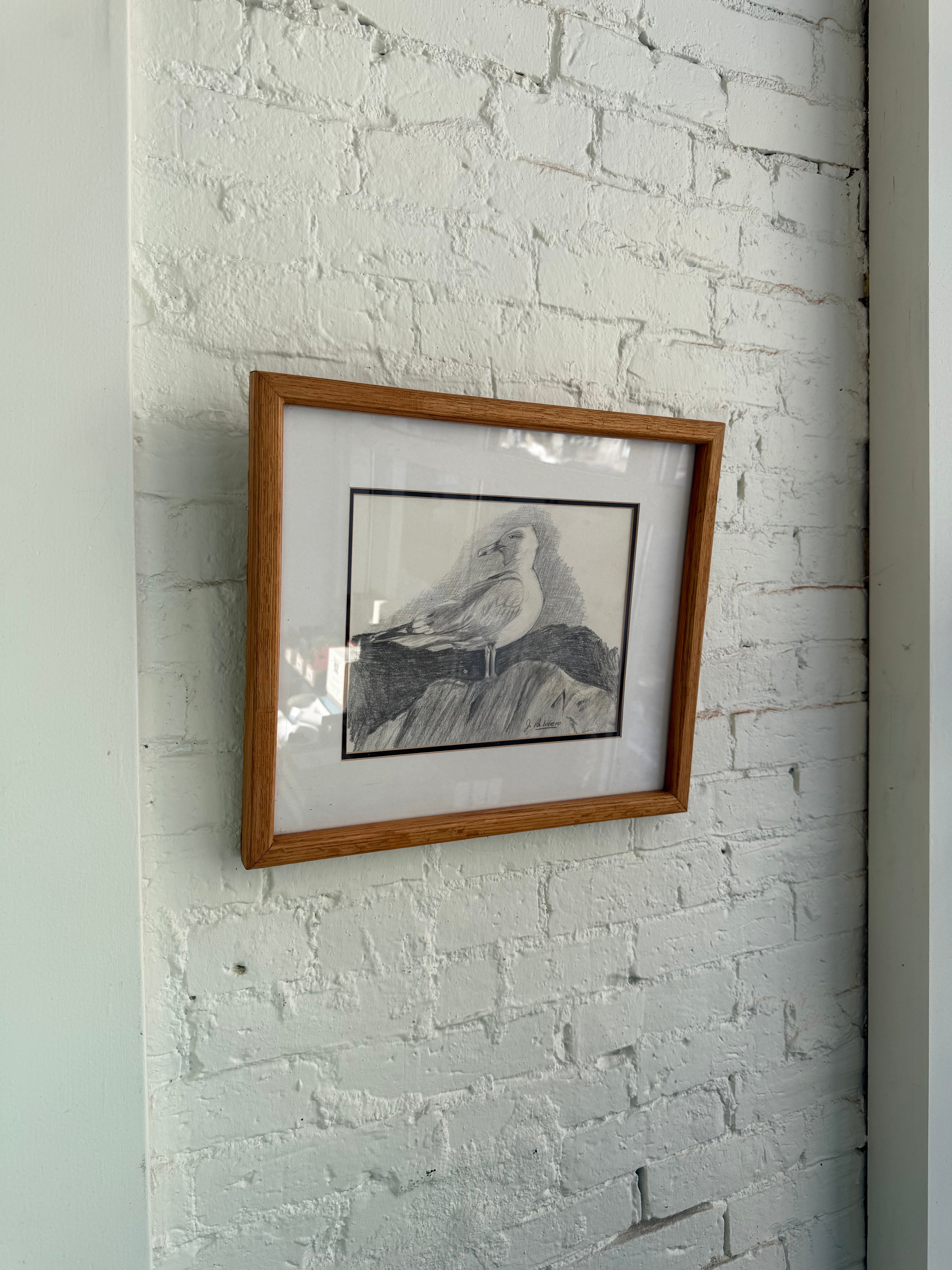 Framed and matted seagull pencil drawing signed by J. Palmero